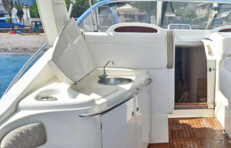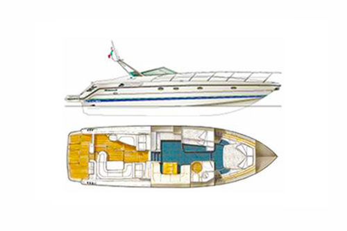 The 41 ft long boat offers 370hp 2 Turbo Diesel engines